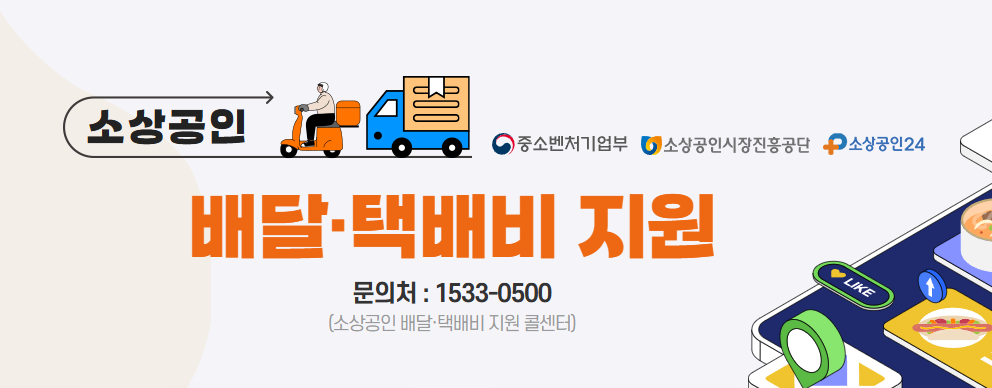 소상공인 24 홈페이지나 배달택배비지원. kr 사이트에서 신청할 수 있어요.